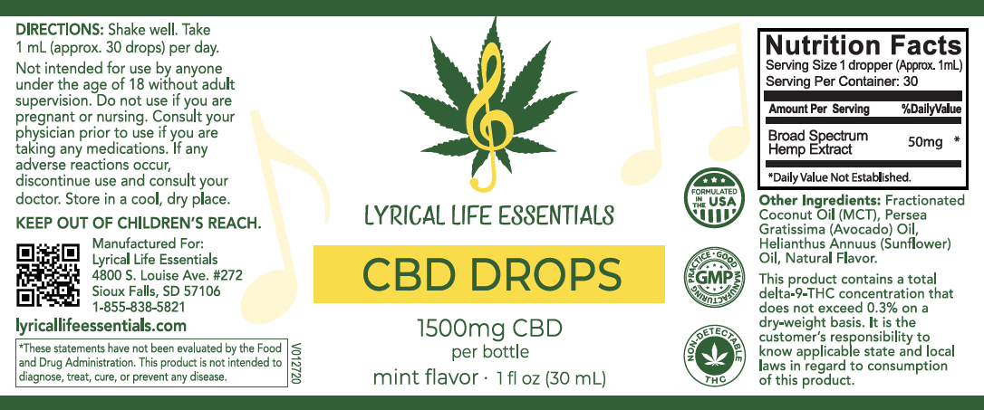 To ensure top-notch quality, Lyrical Life Essentials CBD is sourced from hemp cultivated without harmful chemicals or pesticides. Rigorous third-party testing guarantees that each drop is free from THC and contaminants, so you can trust in the purity and authenticity of our product.
